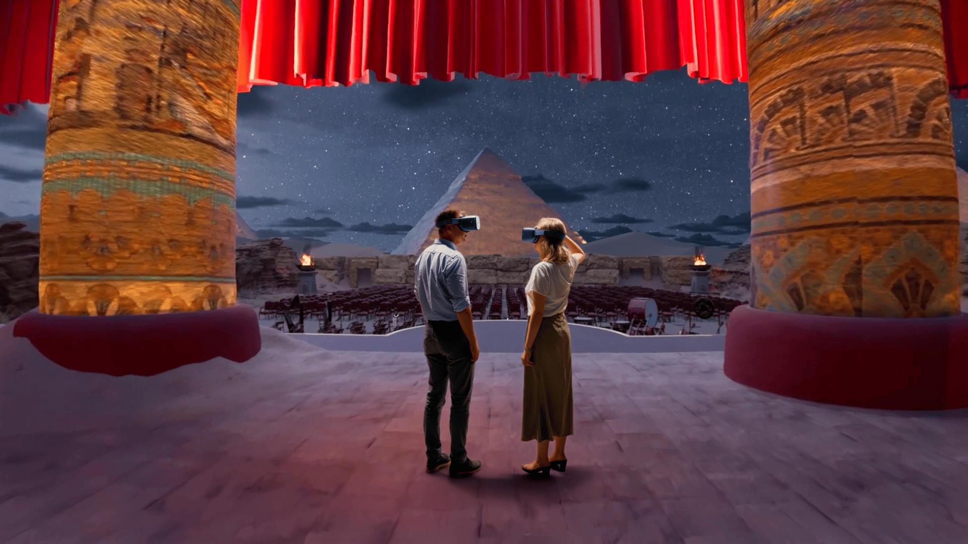 Osserva, da dietro le quinte, una macchina complessa ma perfetta, fatta di maestri artigiani che costruiscono, con ineguagliata competenza e passione, il successo delle opere. Scopri la nascita delle “disposizioni sceniche” e goditi l’inizio dello spettacolo dell’Aida e l’apertura del sipario sulla Piana di Giza.